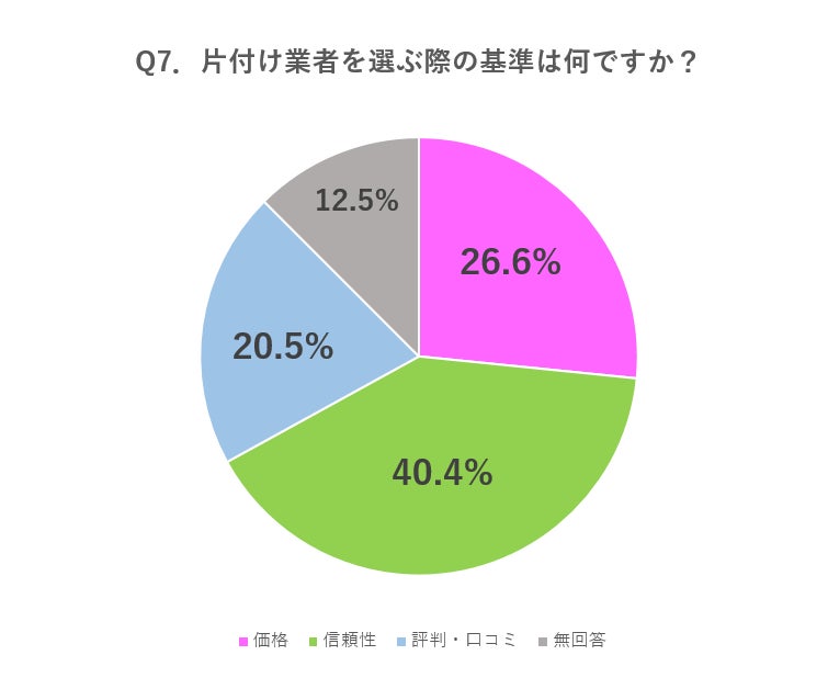 「片付け業者を選ぶ際に基準にしていることはありますか?」の質問には、