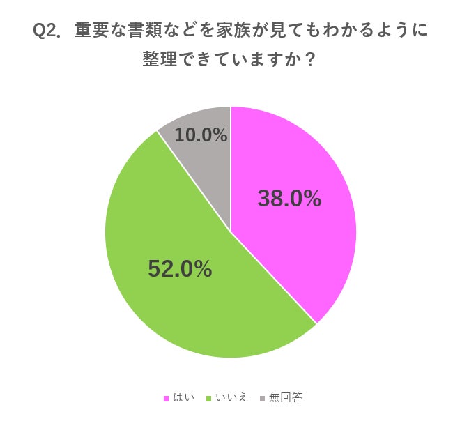 「はい」が38.0%、「いいえ」が52.0%と、高い意識に反して生前整理が完了している人は