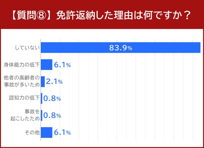 • 免許返納の理由は「身体能力の低下」が6.1%で1位