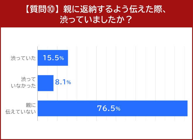 「親に返納するよう伝えた際、渋っていましたか?」という質問には、15.5%にあたる73人が「渋っていた」と回答しました。