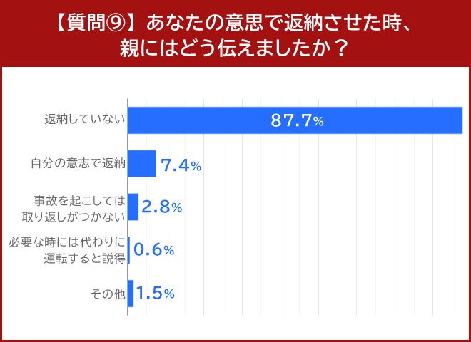 「あなたの意思で返納させた時、親にはどう伝えましたか?」という問いには、2.8%の人が