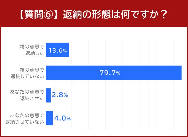 「返納の形態を選択してください」という質問には、「親の意思で返納していない」と回答した人が多く、79.7%でした。