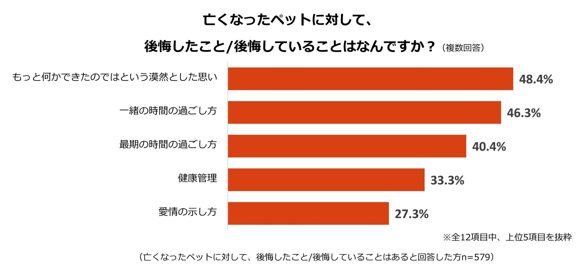 ペットとの別れに後悔を感じている方は約6割、ペットと一緒の時間の過ごし方などに後悔